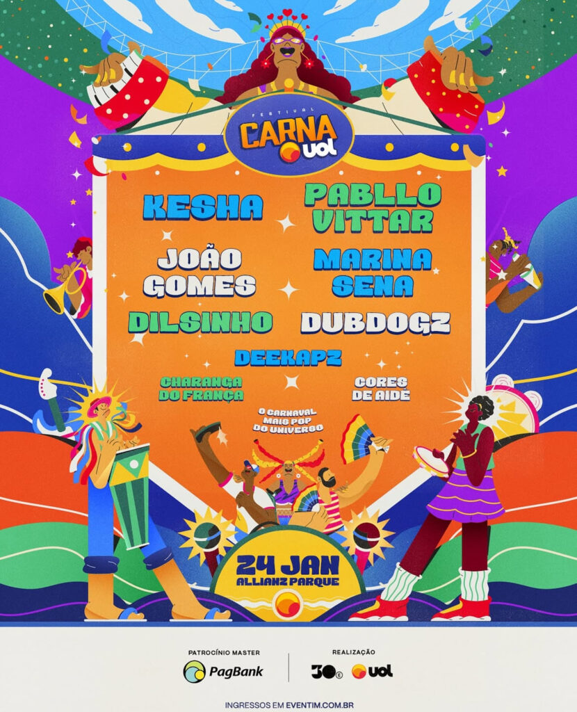 Dona de hits como “Tik Tok”, “Praying” e “Joyride”, Kesha é conhecida por suas performances cheias de energia e visuais marcantes, que conquistam plateias ao redor do mundo. Sua passagem pelo CarnaUOL marca um dos momentos mais esperados da programação, reunindo fãs que acompanham sua carreira desde o início dos anos 2010.