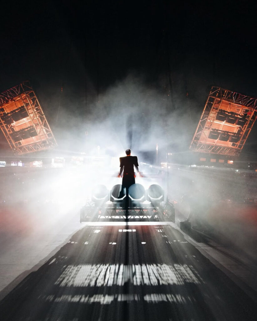 O espetáculo trouxe como grande destaque uma cenografia inédita no Brasil: cinco plataformas de 2,80mx2,80m, comandadas por motores digitais de última geração. Enquanto Pedro ocupava a plataforma central fixa, as outras quatro se moviam em diferentes direções, criando formas surpreendentes em tempo real. No sucesso “Escada do Prédio”, parceria com Marina Sena, a estrutura se transformou em uma escada diante da plateia, em um dos momentos mais marcantes da noite.